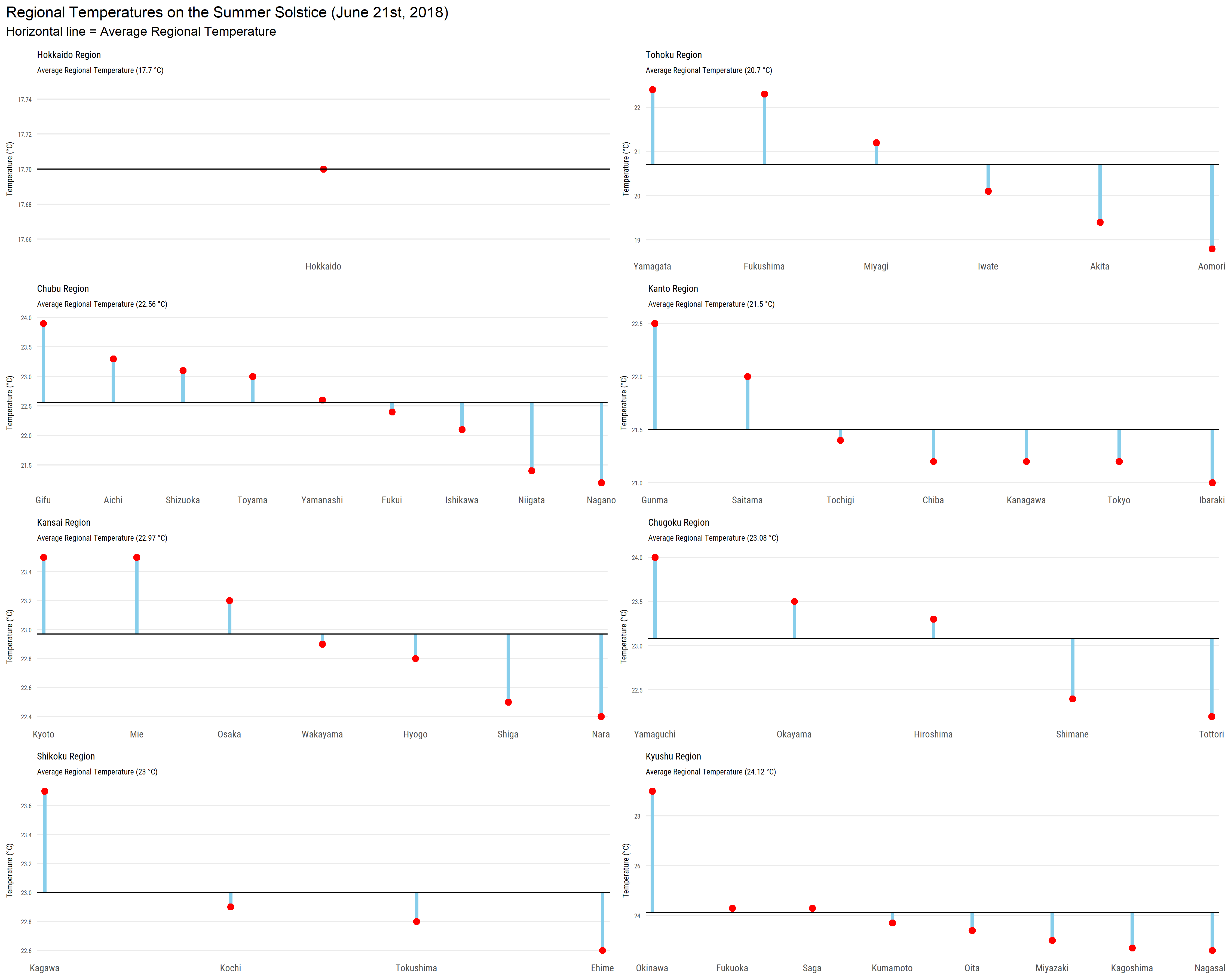 plot_annotation(title = "Regional Temperatures on the Summer Solstice (June 21st, 2018)",