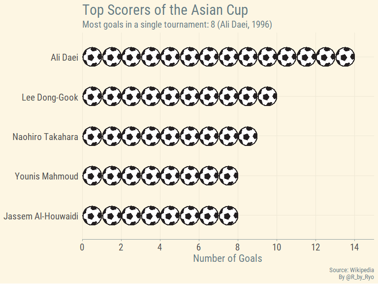 The first thing I looked at was, “Who are the top goalscorers in the history of the Asian Cup?”