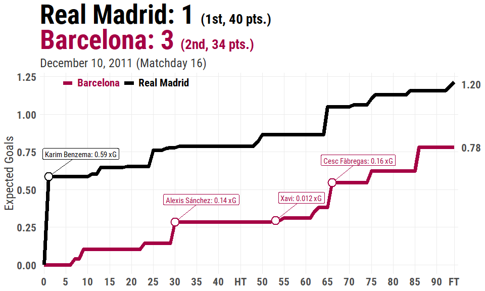 In this blog post I went over some simple plots (dot, line, and bar charts) you can do using {ggplot2} with the free StatsBomb data. There’s plenty more to do with this data and I’m still experimenting and learning everyday. A good way to practice is to take something someone has done and then recreate that visualization by applying it to a slightly different data set with your favorite programming language. This is exactly how I learned to do things; I’ll see something on Twitter and try to remake that viz using Liverpool data or J-League data instead!